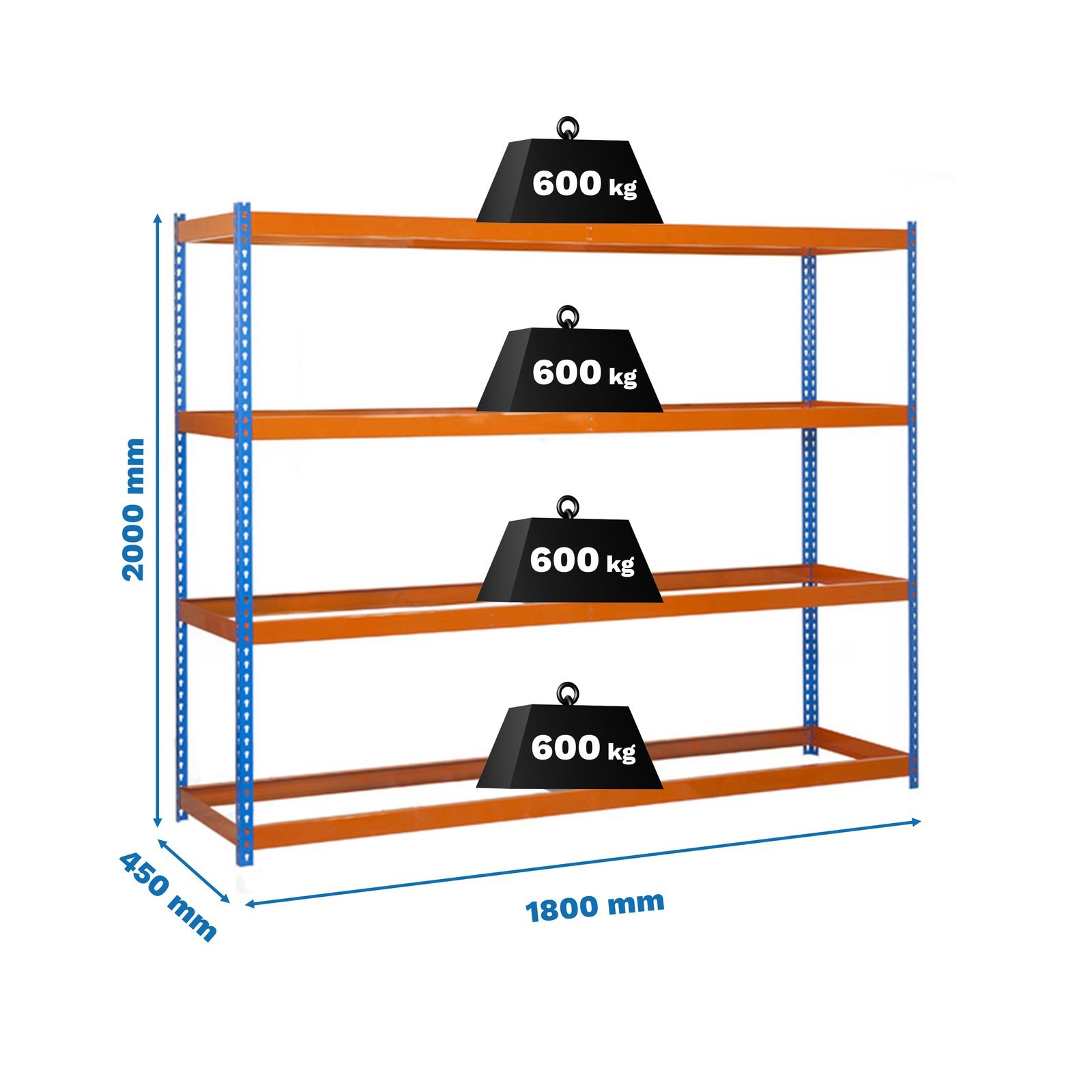 Estanteria metalica sin tornillos con 4 estantes. No contiene ni bandejas de aglomerado ni bandejas de metal. Estanteria que se monta de forma facil y comoda gracias a su sistema de click, sin tornillos simplemente con la ayuda de un martillo podras tener esta estanteria montada en unos minutos. Tienes a tu disposicion un video detallado de montaje en Youtube. La capacidad de carga de cada uno de los estantes es de 600 kgs. Contiene un refuerzo por estante. Contiene un recubrimiento plastico y acaaseo en epoxypoliester. Ademas es muy facil de limpiar. Manipulacion del producto sin aristas de corte, sin riesgos de manipulacion. Es un producto fabricado en Europa por Simonrack. Medidas en uso del producto, 1975x1810x460 mm
