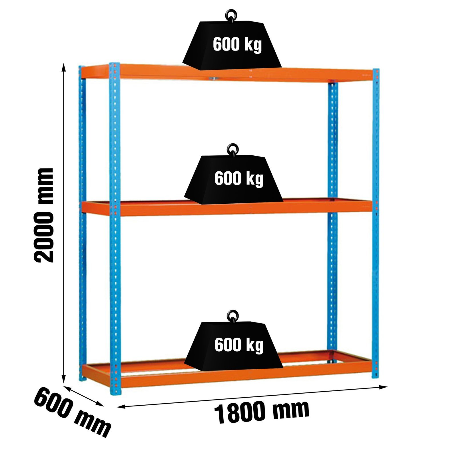 Estanteria metalica sin tornillos con 3 estantes. No contiene ni bandejas de aglomerado ni bandejas de metal. Estanteria que se monta de forma facil y comoda gracias a su sistema de click, sin tornillos simplemente con la ayuda de un martillo podras tener esta estanteria montada en unos minutos. Tienes a tu disposicion un video detallado de montaje en Youtube. La capacidad de carga de cada uno de los estantes es de 600 kgs. Contiene un refuerzo por estante. Contiene un recubrimiento plastico y acaaseo en epoxypoliester. Ademas es muy facil de limpiar. Manipulacion del producto sin aristas de corte, sin riesgos de manipulacion. Es un producto fabricado en Europa por Simonrack. Medidas en uso del producto, 1975x1810x610 mm