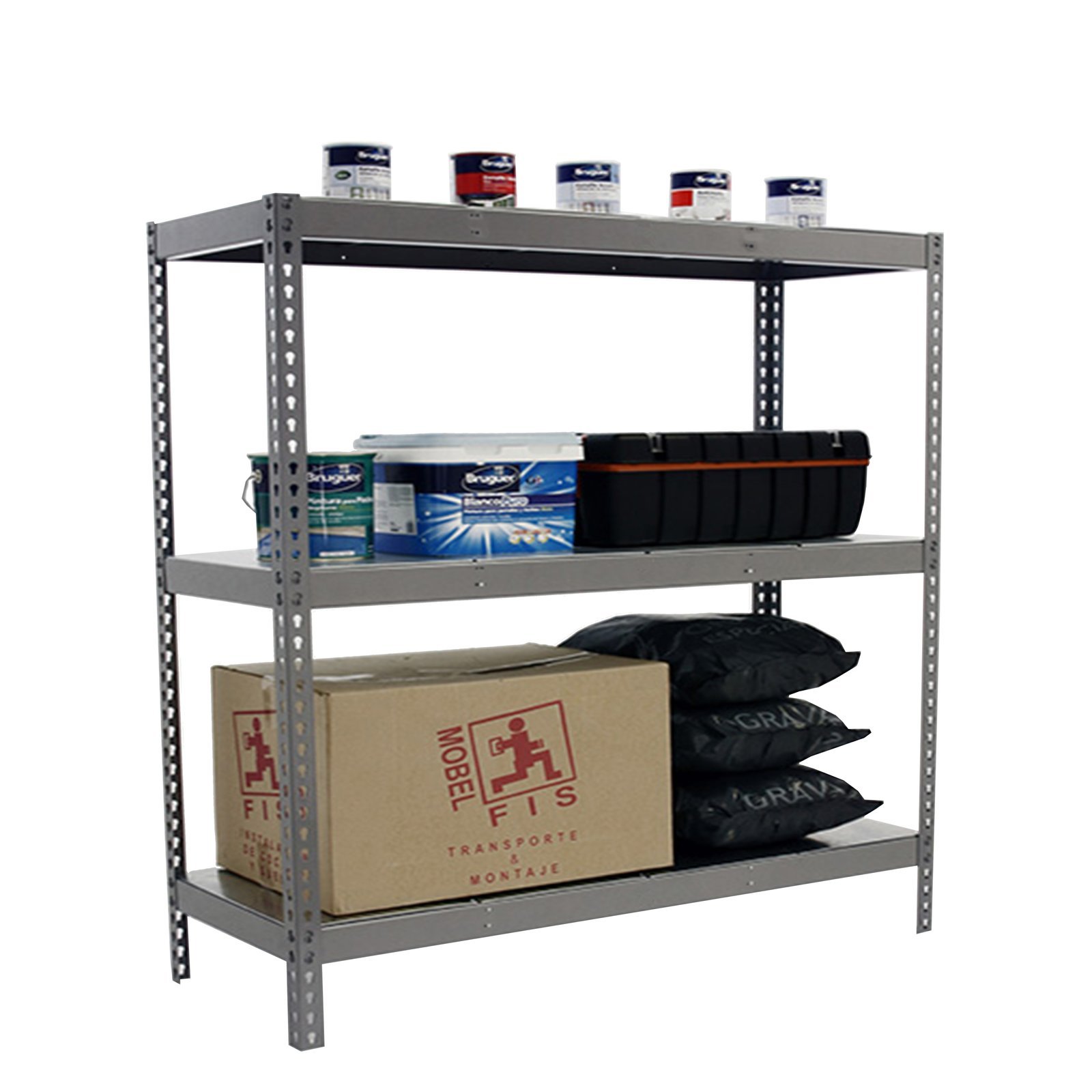Estanteria media carga sin tornillos de color gris/galva con 3 estantes metalicos. Tiene una capacidad de carga por estante de 400 kg y una capacidad total de 1200 kgs. Incluye bandejas de metal. Con unas medidas en mm de 2000x2400x600. Fabricada en Europa por Simonrack y se monta rapido siguiendo las instrucciones