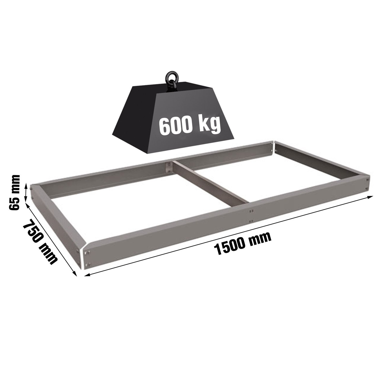 Estante adicional Simonforte 1507 gris. No contiene bandejas de aglomerado ni de metal. Su capacidad de carga es de 600 kg. Dimensiones, 65x1500x750 mm. fabricado en Europa por Simonrack