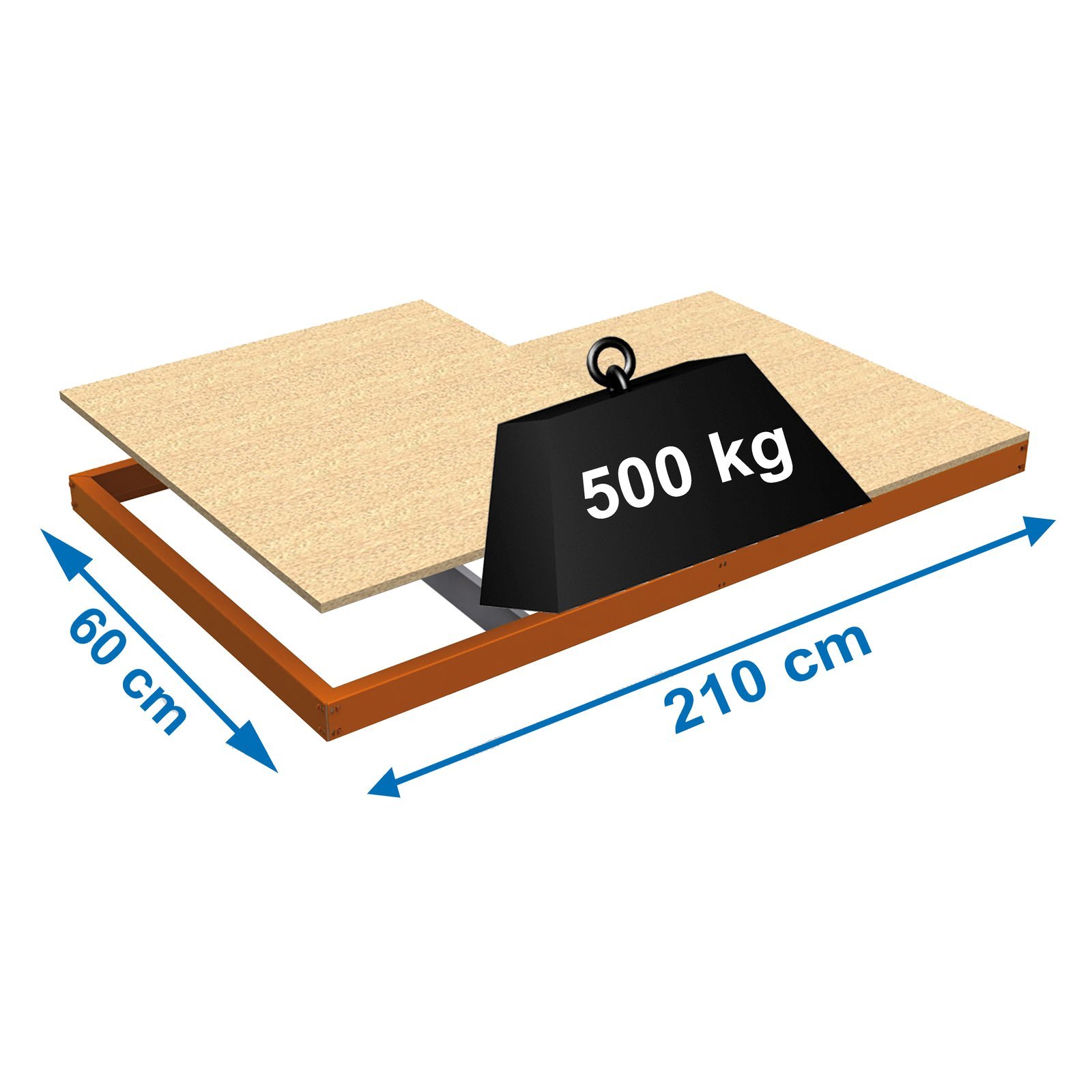 Estante adicional sin tornillos. Se monta de forma facil y comoda gracias a su sistema de click, sin tornillos simplemente con la ayuda de un martillo La capacidad de carga es de 500 kgs. Incluye 2 bandejas de aglomerado, una mas larga que la otra. Incluye un refuerzo. Medidas en uso del producto, 2110x610x77 mm