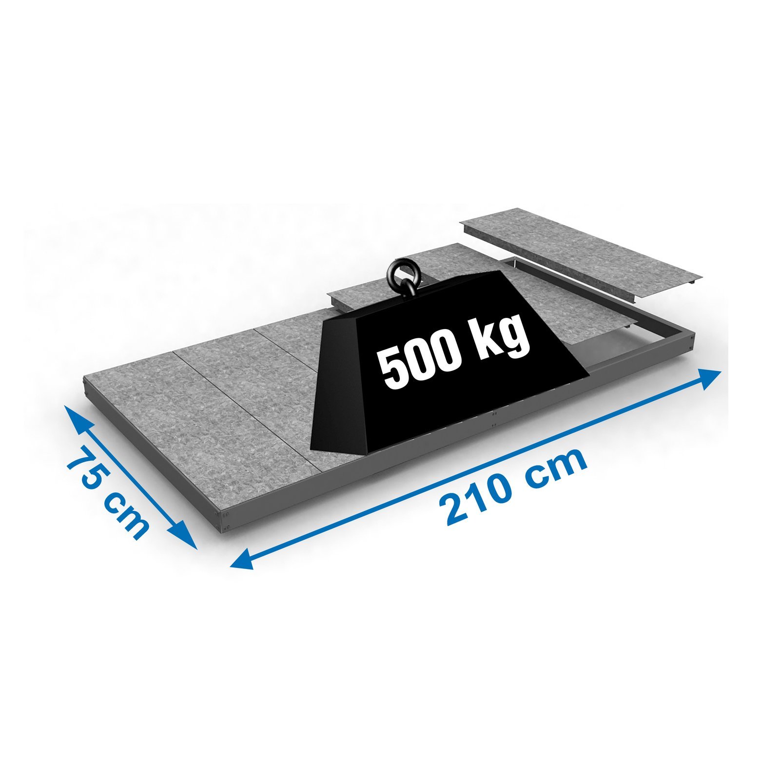 Estante adicional sin tornillos. Se monta de forma facil y comoda gracias a su sistema de click, sin tornillos simplemente con la ayuda de un martillo. La capacidad de carga es de 500 kgs. Incluye bandejas de metal. Incluye dos refuerzos. Medidas en uso del producto, 2110x760x70 mm