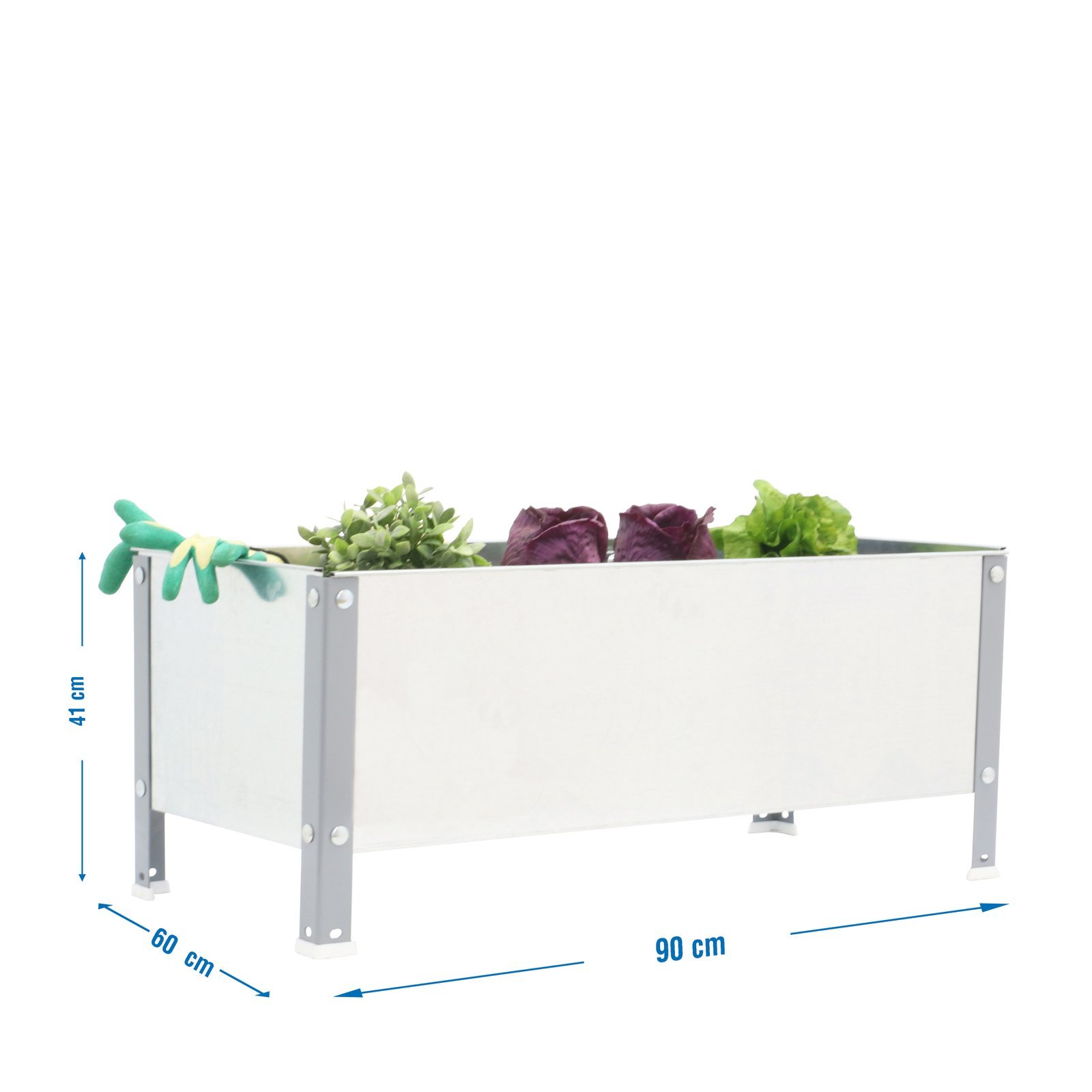 Huerto urbano metalico de color GRIS/GALVA y medidas (alto x ancho x largo) 410x900x600 mm. Tiene una capacidad de 140 L, montaje facil con tornillos, no necesita anclaje a la pared. Hecho en Europa, calidad europea, puedes encontrar las instrucciones en el interior o en el siguiente enlace, https, //www. youtube. com/watch?v=NdqlmUNGjts. Medidas en uso del producto, 415x925x625 mm