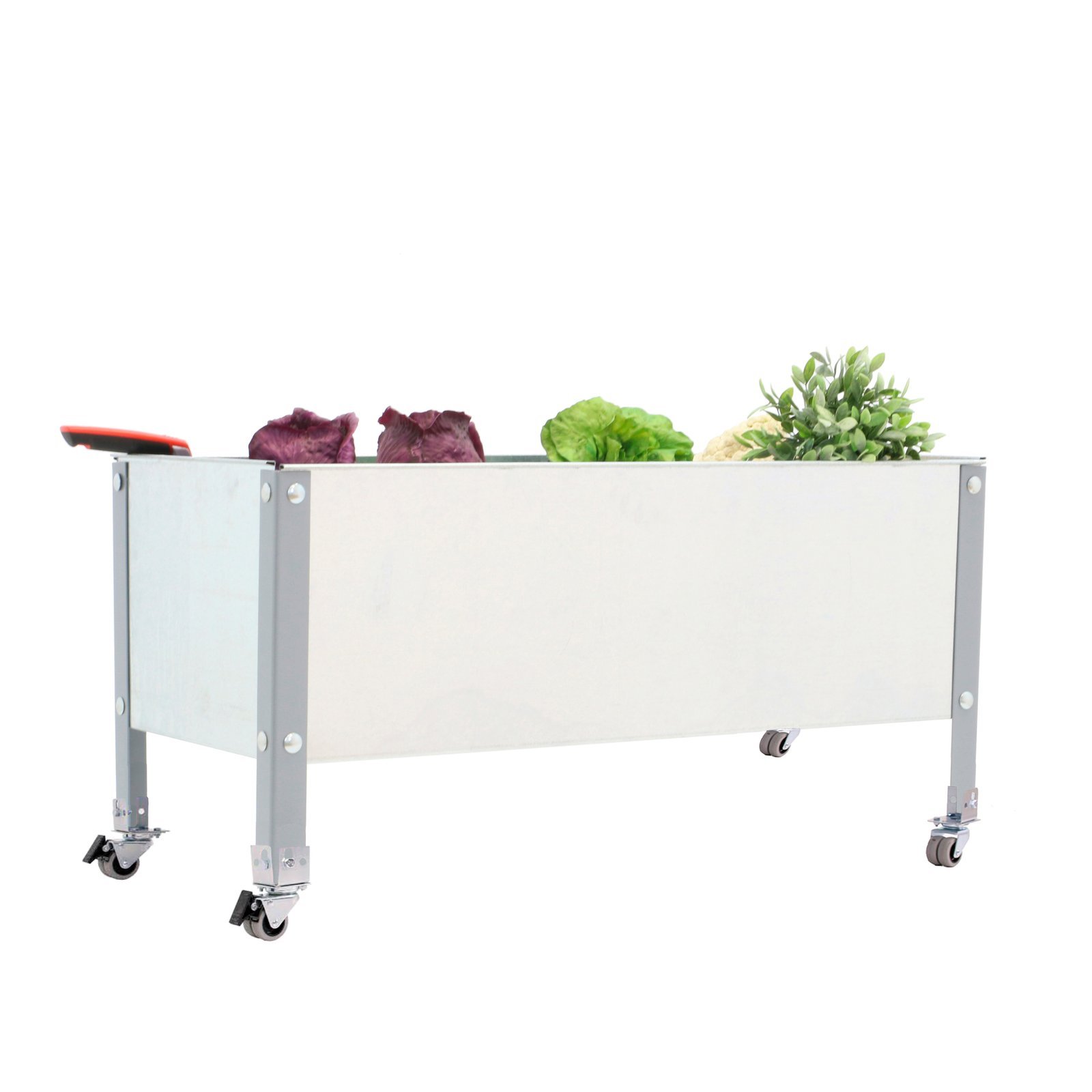 Huerto urbano metalico de color GRIS/GALVA y medidas (alto x ancho x largo) 525x1200x600 mm. Tiene una capacidad de 70 L, montaje facil con tornillos, no necesita anclaje a la pared. Hecho en Europa, calidad europea, puedes encontrar las instrucciones en el interior o en el siguiente enlace, https, //www. youtube. com/watch?v=NdqlmUNGjts. Medidas en uso del producto, 490x1225x625 mm