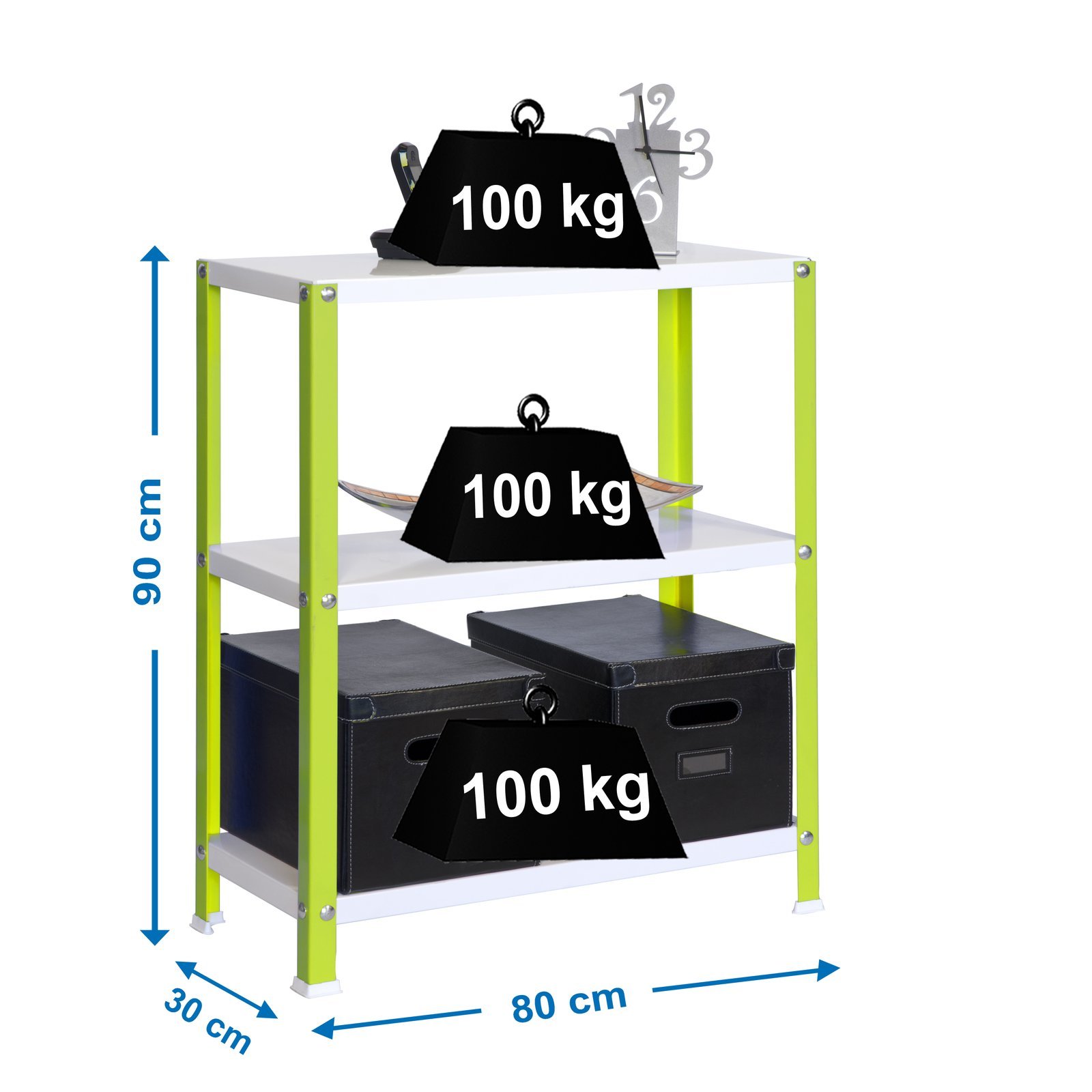Estanteria metalica con tornillos avellanados con un mejor acabado y con bandejas metalicas. Montaje facil y rapido con tornillos. Estanteria con topes para no rayar el suelo. Ideal para cualquier rincon de la casa. Tiene 3 estantes y una capacidad de carga de 100 kg por bandeja metalica. Montaje en unos minutos. Packaging con peso ligero. Estanteria rigida, no se tambalea. No necesita anclaje a la pared. Producto fabricado en Europa por Simonrack. Medidas en uso del producto, 902x810x310 mm