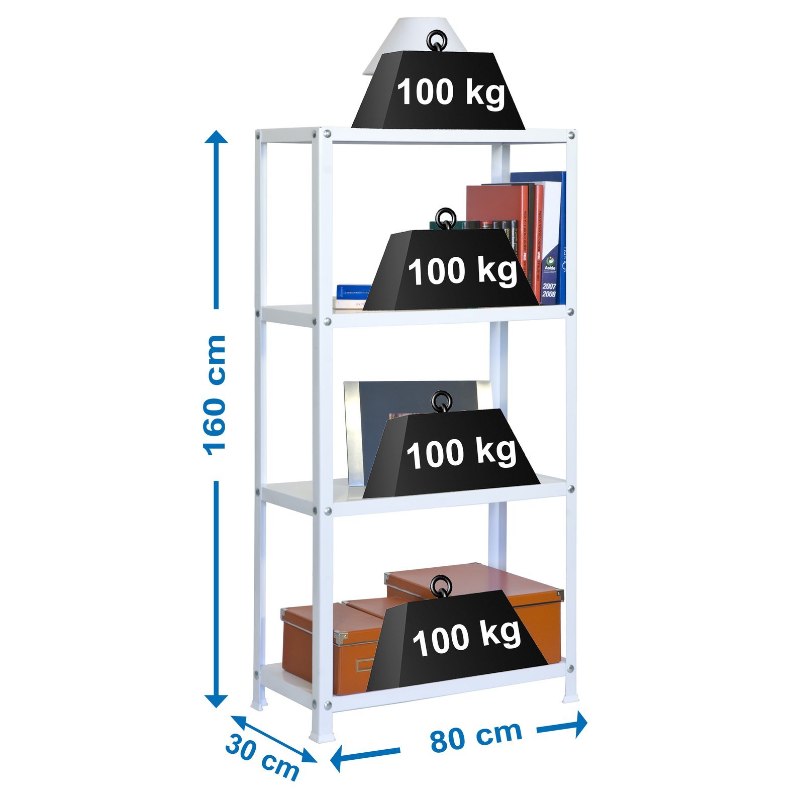 Estanteria metalica con tornillos avellanados con un mejor acabado y con bandejas metalicas. Montaje facil y rapido con tornillos. Estanteria con topes para no rayar el suelo. Ideal para cualquier rincon de la casa. Tiene 4 estantes y una capacidad de carga de 100 kg por bandeja metalica. Montaje en unos minutos. Packaging con peso ligero. Estanteria rigida, no se tambalea. No necesita anclaje a la pared. Producto fabricado en Europa por Simonrack. Medidas en uso del producto, 1602x810x310 mm