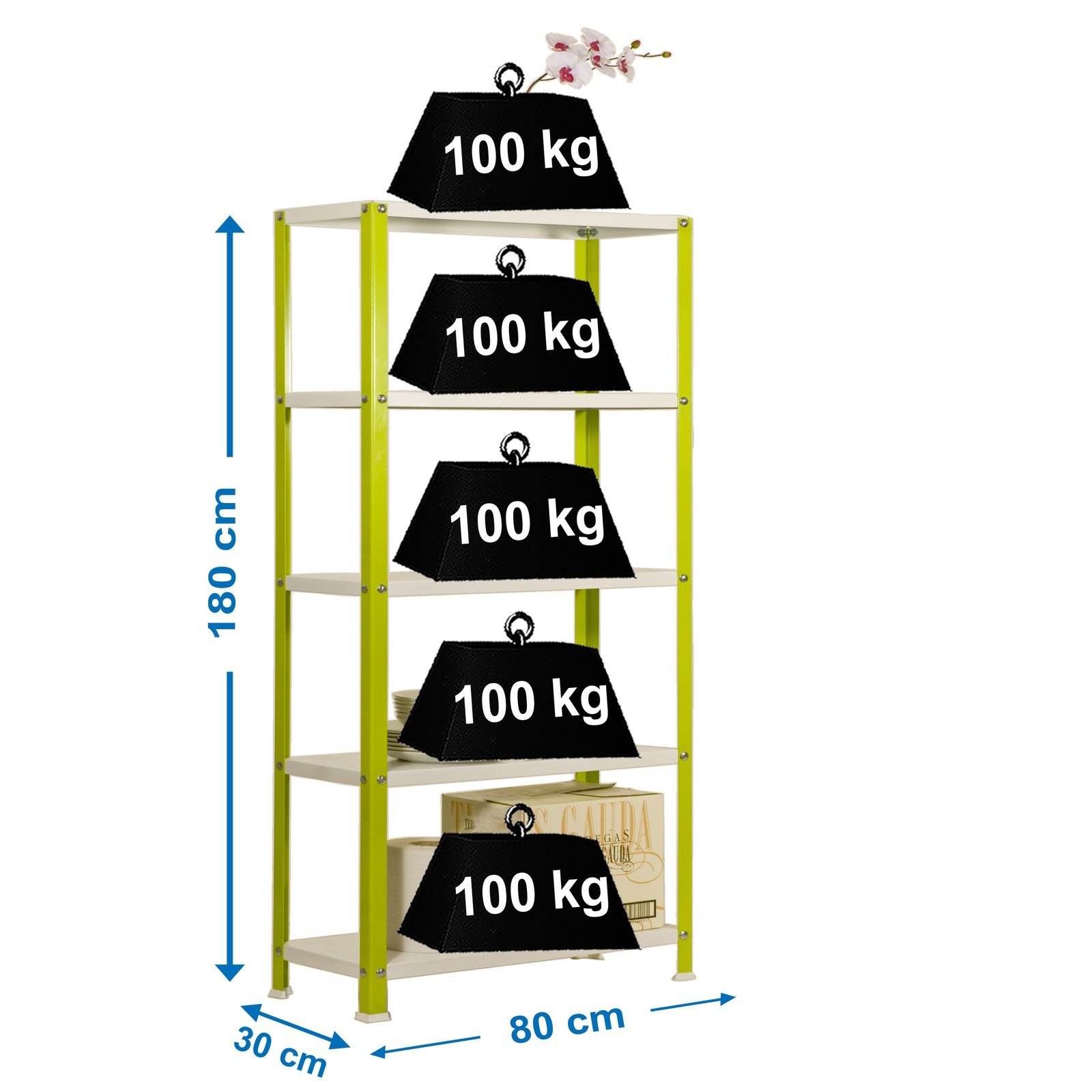 Estanteria metalica con tornillos avellanados con un mejor acabado y con bandejas metalicas. Montaje facil y rapido con tornillos. Estanteria con topes para no rayar el suelo. Ideal para cualquier rincon de la casa. Tiene 5 estantes y una capacidad de carga de 100 kg por bandeja metalica. Montaje en unos minutos. Packaging con peso ligero. Estanteria rigida, no se tambalea. No necesita anclaje a la pared. Producto fabricado en Europa por Simonrack. Medidas en uso del producto, 1802x810x310 mm