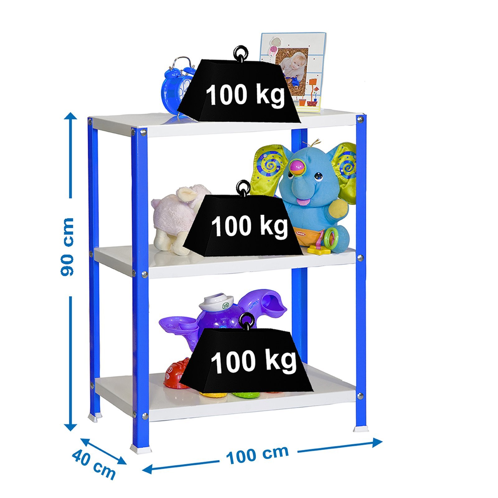 Estanteria metalica con tornillos avellanados con un mejor acabado y con bandejas metalicas. Montaje facil y rapido con tornillos. Estanteria con topes para no rayar el suelo. Ideal para cualquier rincon de la casa. Tiene 3 estantes y una capacidad de carga de 100 kg por bandeja metalica. Montaje en unos minutos. Packaging con peso ligero. Estanteria rigida, no se tambalea. No necesita anclaje a la pared. Producto fabricado en Europa por Simonrack. Medidas en uso del producto, 902x1100x410 mm