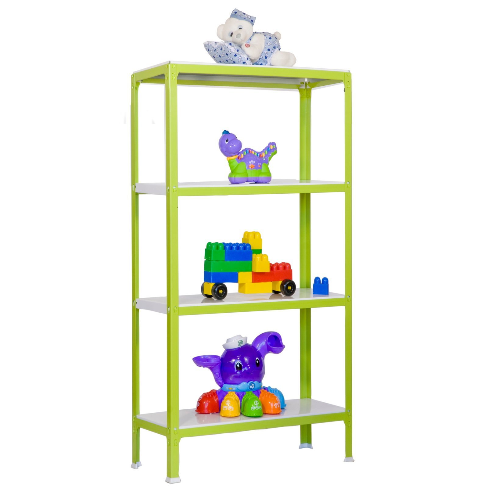 Estanteria metalica sin tornillos de color VERDE/BLANCO con medidas (alto x ancho x largo) 1600x800x300 mm. Tiene 4 estantes y una capacidad de carga por estante de 150 kg. Los estantes tienen altura regulable y las bandejas son faciles de limpiar. Hecho en Europa, calidad europea, puedes encontrar las instrucciones en el interior o en el siguiente enlace, https, //www. youtube. com/watch?v=Rx91Gq2vy1A. Medidas en uso del producto, 1602x810x310 mm