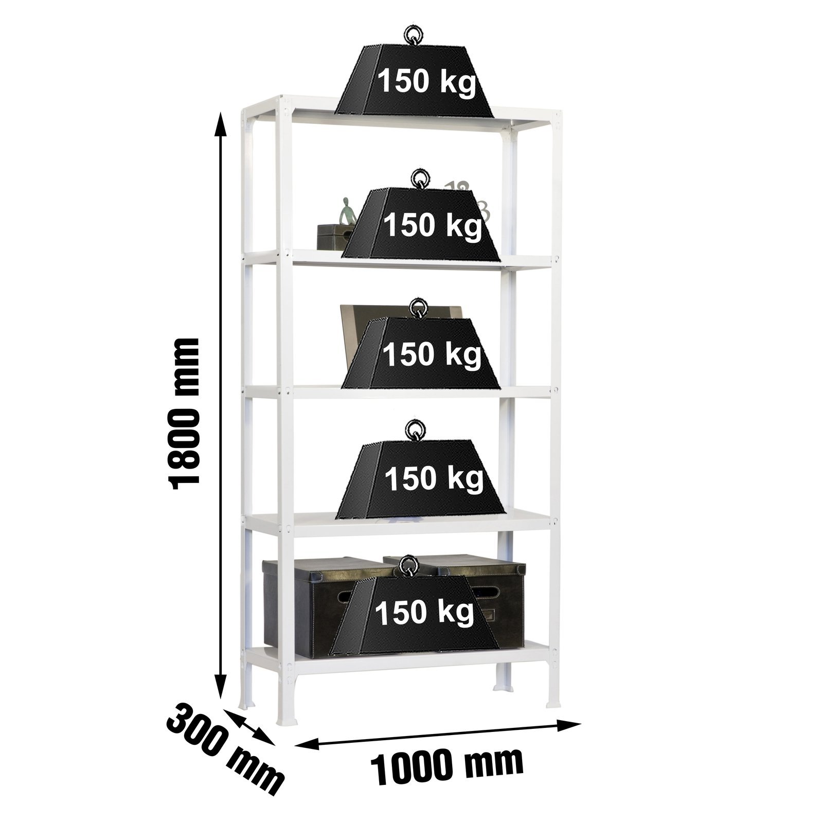 Estanteria metalica ideal para el hogar. Con bandejas metalicas. Montaje facil y rapido sin tornillos. Estanteria con topes para no rayar el suelo. Ideal para cualquier rincon de la casa. Tiene 5 estantes y una capacidad de carga de 100 kg por bandeja metalica. Montaje facil y rapido en menos de 9 minutos. Packaging con peso ligero. Estanteria rigida, no se tambalea. No necesita anclaje a la pared. Producto fabricado en Europa por Simonrack. Medidas en uso del producto, 1802x1100x310 mm. Puedes encontrar las instrucciones en el interior o en el siguiente enlace, https, //www. youtube. com/watch?v=Rx91Gq2vy1A
