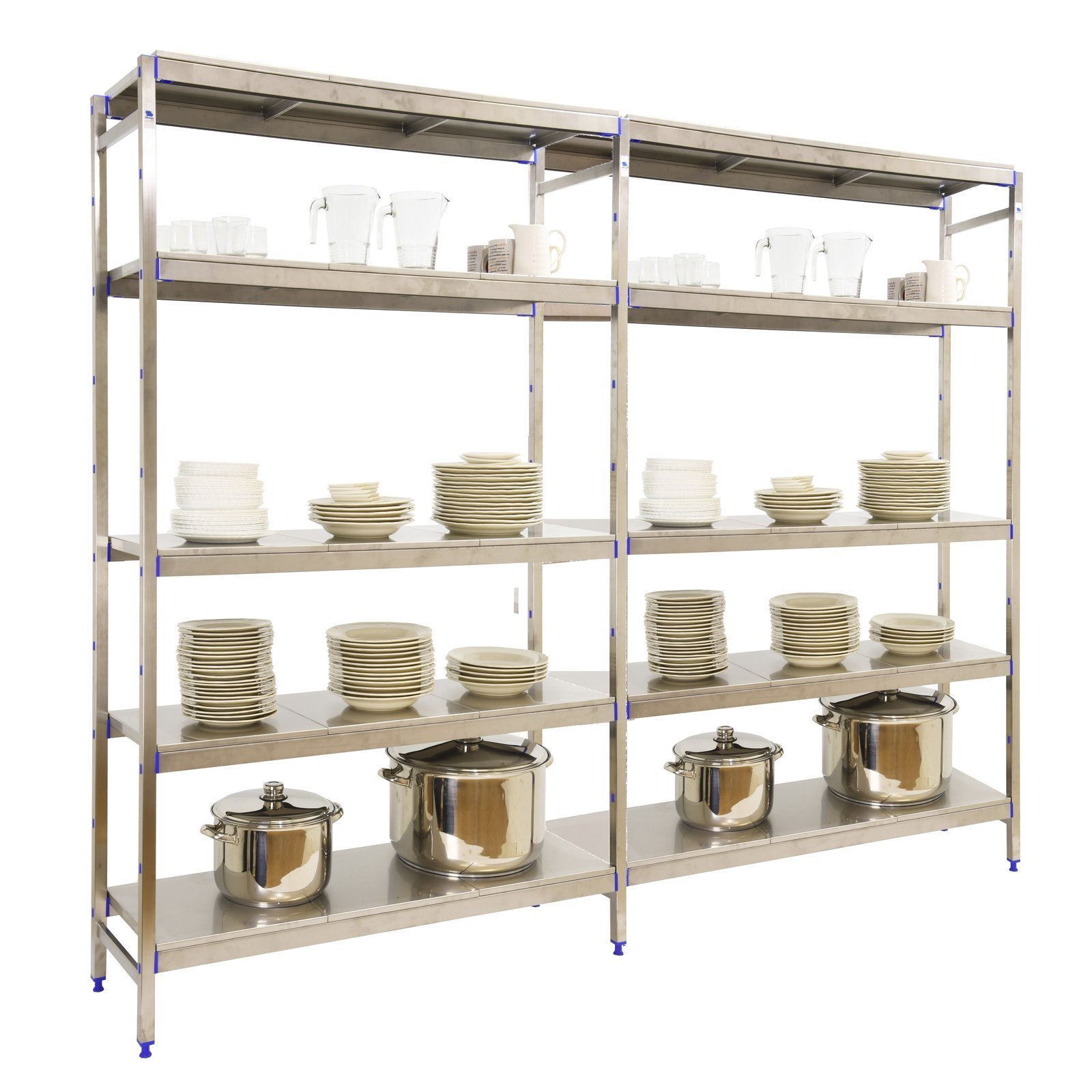 Estanteria metalica sin tornillos de color ACERO INOXIDABLE con capacidad de carga por estante de 200 kg. El numero de estantes es 5 y las medidas (alto x ancho x fondo) son 1600x3290x400 mm. Hecha de acero inoxidable y con la capacidad de aguantar hasta 30 grados bajo cero. modulo inicial. Producto europeo, calidad europea, podras encontrar las instrucciones de montaje en su interior. Medidas en uso del producto, 1600x3290x400 mm