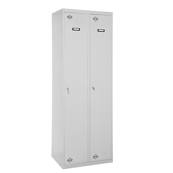 Taquilla metalica de color GRIS/GRIS y medidas (alto x ancho x largo) 1800x1000x500 mm. Se entrega montado. Incluye dos divisores que dividen en dos el espacio interior, cerraduras, llaves, respiraderos y etiqueteros para nombres. Fabricado por Simonrack, calidad europea. Medidas en uso del producto, 1803x1003x501 mm