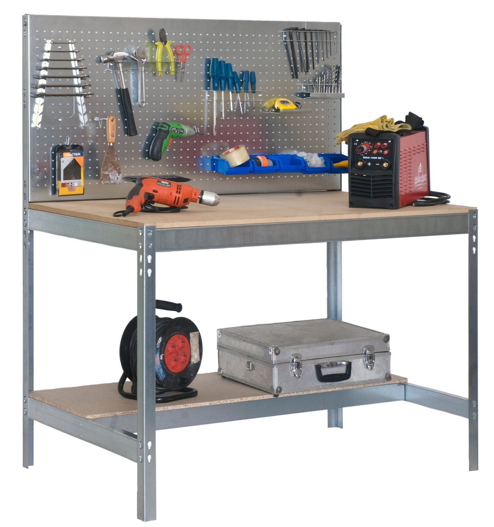 Banco de trabajo metalico de color GALVA/MADERA con capacidad de carga de 400 kg. Las medidas (alto x ancho x fondo) son 1445x910x610 mm. Producto europeo, calidad europea, podras encontrar las instrucciones de montaje en su interior o en este enlace, https, //www. youtube. com/watch?v=dsoRyF5mC0M. Medidas en uso del producto, 1445x910x610 mm