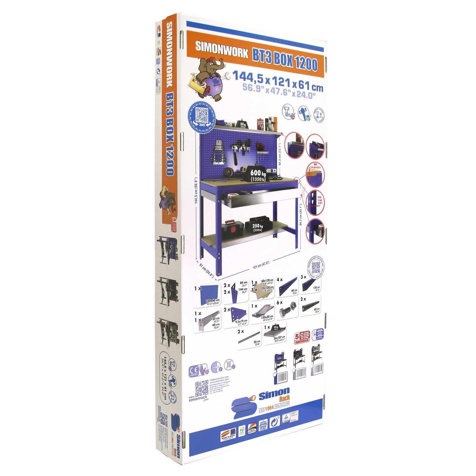 Banco de trabajo metalico de color GALVA/MADERA con capacidad de carga de 400 kg. Las medidas (alto x ancho x fondo) son 1445x910x610 mm. Incluye cajon metalico con capacidad de 35 kg. Producto europeo, calidad europea, podras encontrar las instrucciones de montaje en su interior o en este enlace, https, //www. youtube. com/watch?v=gw-_YZh8bjY. Medidas en uso del producto, 1445x910x610 mm